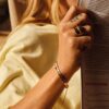 Funklende, klare krystaller tilfører denne stilrene guldbelagte statementring et eksklusivt strejf. En blank rund flade danner et smukt skjold under rækken af klare krystaller. En karakterfuld ring, der reflekterer solen og sender et stærkt signal om en stilbevidst personlighed med sans for luksuriøs æstetik.